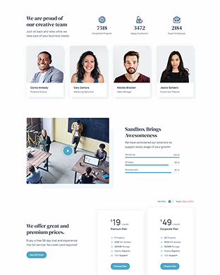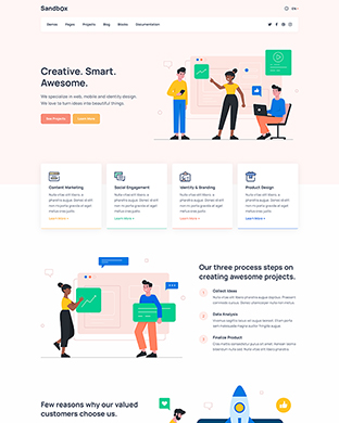 Sandbox includes amazing features and elements to create rich and attractive pages.
